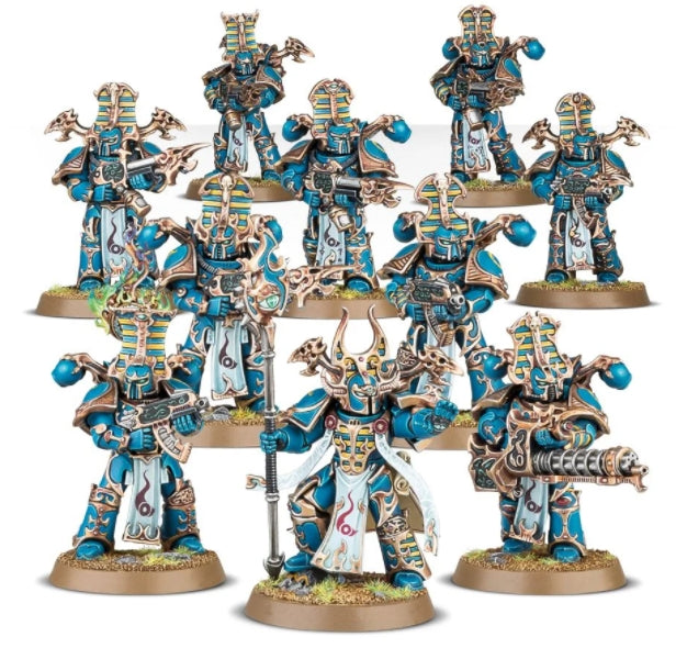 I Rubricae emergono dalla nebbia. Molti di questi guerrieri immortali erano abili psionici, prima che un'antica maledizione li trasformasse per l'eternità in gusci vuoti: le loro barocche armature potenziate contengono solo polvere luccicante. In battaglia i loro occhi sono circondati da una malvagia luce sfrigolante quando aprono il fuoco contro coloro che un tempo chiamavano fratelli. Le loro armi infernali sputano getti di fuoco warp tra i ranghi avversari, facendo esplodere carne e corazze sciolte in tutte le direzioni.