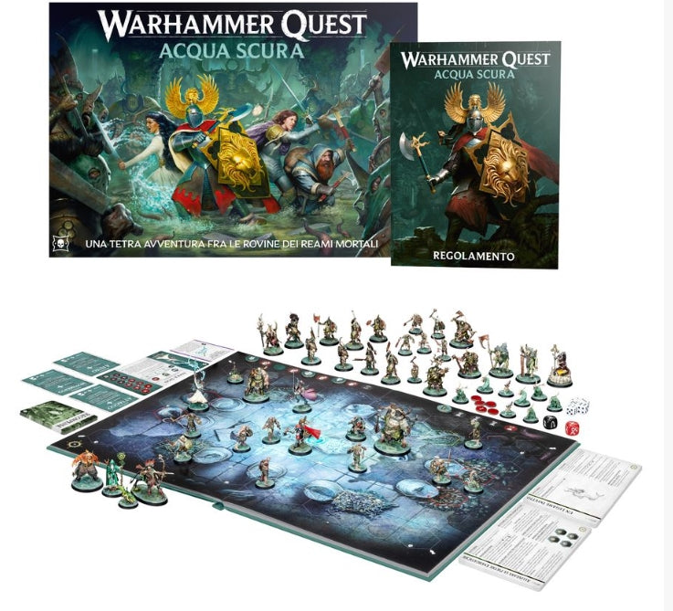 In Warhammer Quest: Acqua Scura, tu e fino a tre amici vestite i panni di un gruppo eterogeneo di eroi che cercano di purificare la corruzione dell'Abbazia di Giada. Potrete sperare di sopravvivere solo collaborando ed equilibrando punti di forza e abilità. Con ogni spedizione svelerai i piani subdoli del demoniaco Principe delle Piaghe. Le missioni ti condurranno in luoghi pericolosi e pieni di insidie. Tuttavia, lungo il tragitto otterrai esperienza e bottino che ti aiuteranno nella tua impresa e ti consentiranno infine di affrontare i nemici più potenti, come Gelgus Pust in persona.
