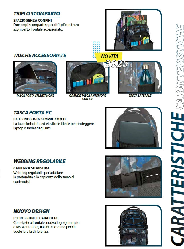 Con elastico frontale, nuovo logo gommato e tasca anteriore, #BDBF è lo zaino per chi