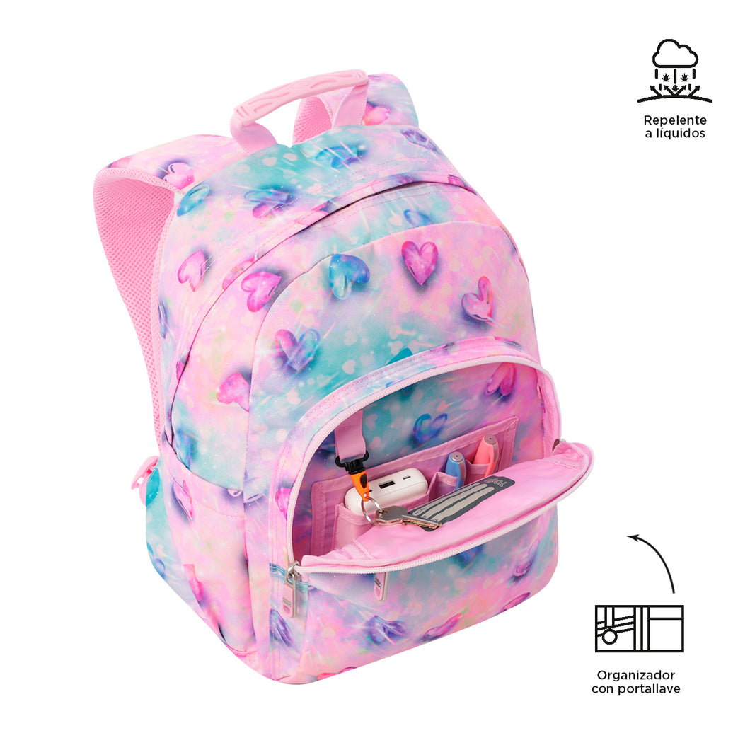 Lo zaino Rayol della collezione Ecole è perfetto per la scuola. È realizzato in tela RPET, ricavata da bottiglie di plastica riciclate, il che lo rende un'opzione sostenibile. È dotato di uno scomparto principale e due scomparti anteriori di rapido accesso, oltre a una tasca dedicata per un laptop da 14 pollici. Le tasche laterali sono ideali per trasportare una bottiglia o un ombrello. Il rinforzo in gomma sulla base e i supporti protettivi in PVC garantiscono durata e resistenza agli sfregamenti. Inoltre, lo schienale ergonomico Air Mesh e le cinghie garantiscono un comfort superiore, mentre l'organizer con portachiavi mantiene ogni cosa al suo posto. Un'opzione completa per la vita quotidiana a scuola!
